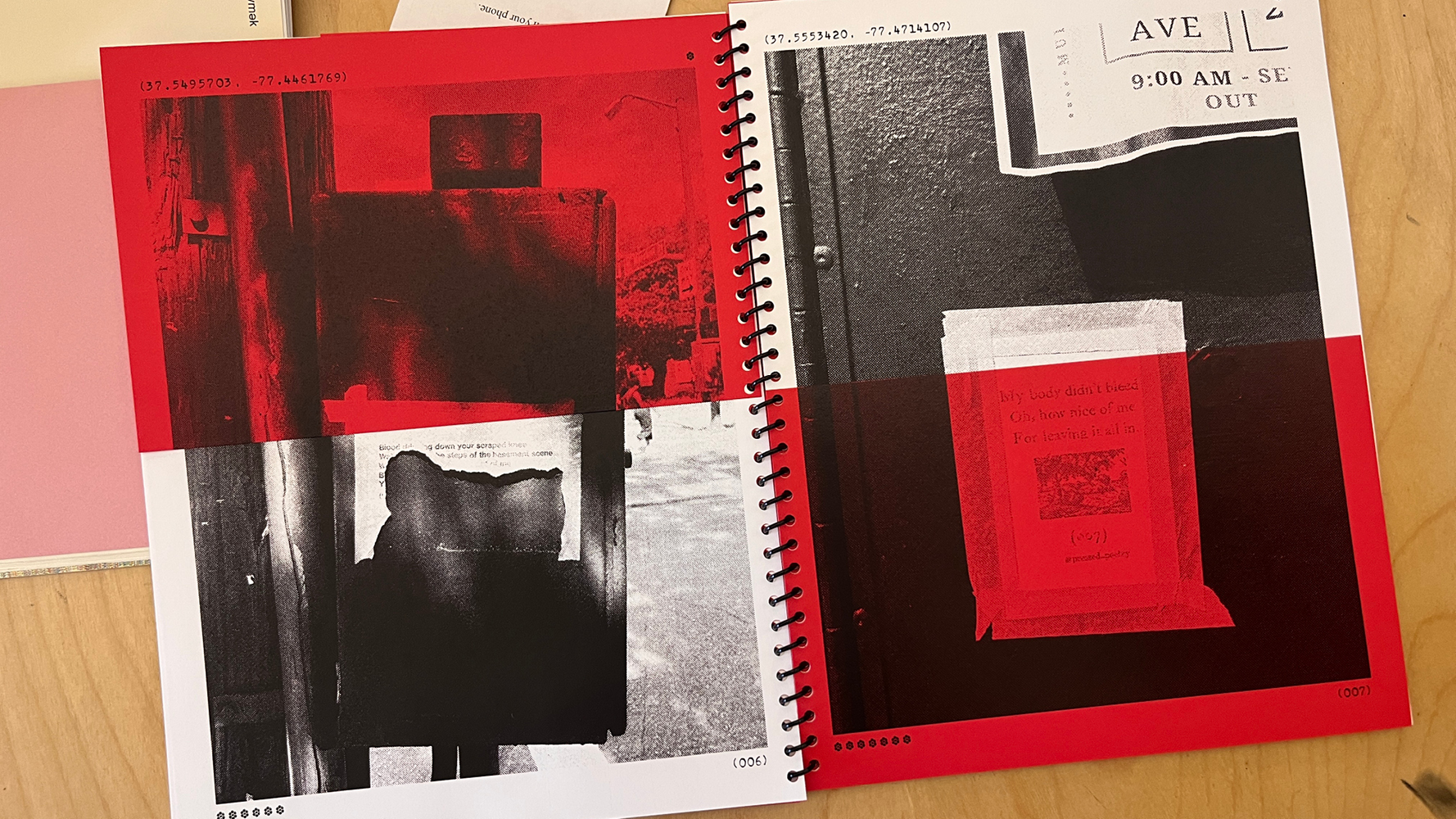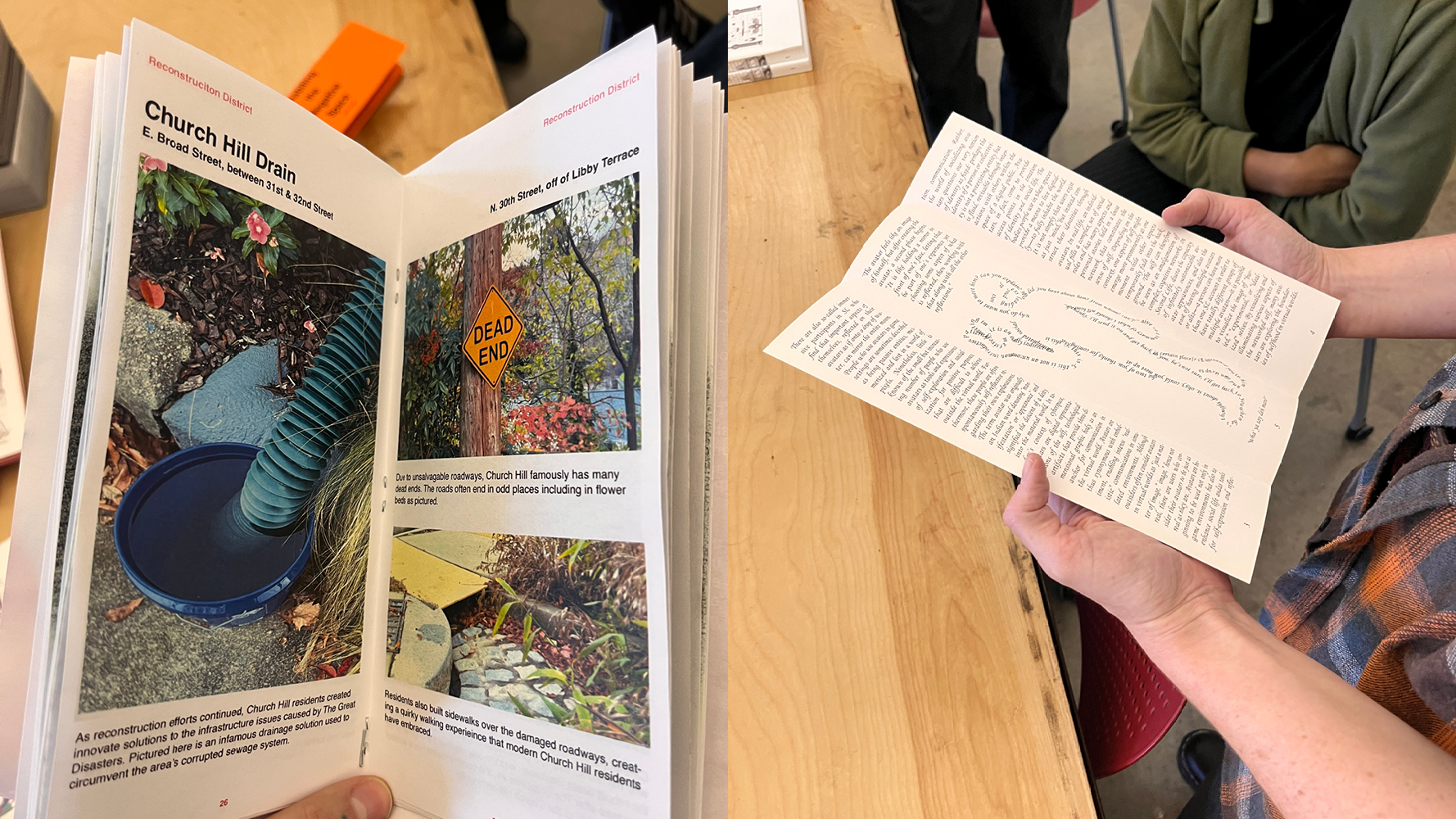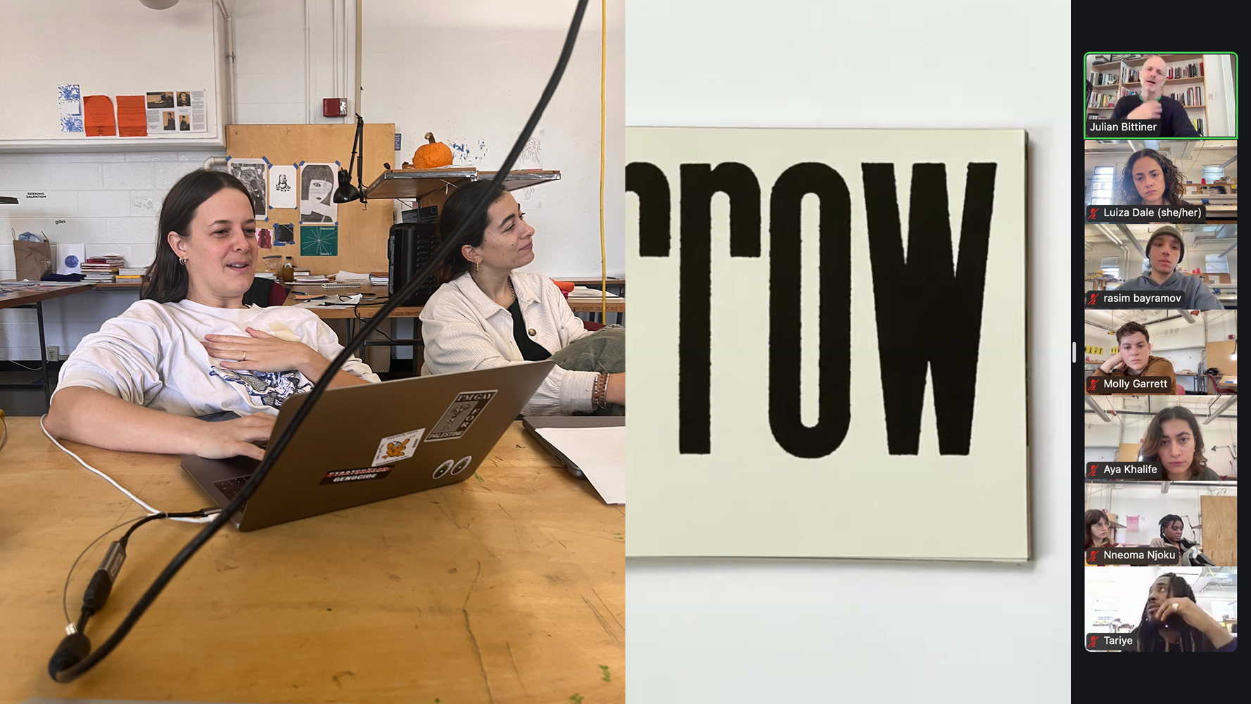 The images here show work completed in Fall 2024 by graduate students Rasim Bayramov, Molly Garrett, Tariye George-Phillips, Aya Khalife, Nneoma Njoku, and Irene Piazza. Also pictured: class guests Rosen Eveleigh and Julian Bittiner, and Richmond Young Writers.